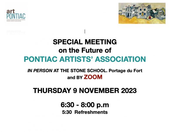 IMPORTANT ANNOUNCEMENT OF A SPECIAL MEETING for Members of our Association , other artists and members of the community on the future of artPontiac,…