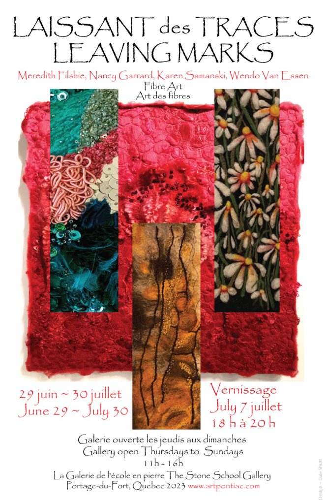 Be inspired by visiting the gallery in July to see exciting and diverse fiber art by four new members of our group!