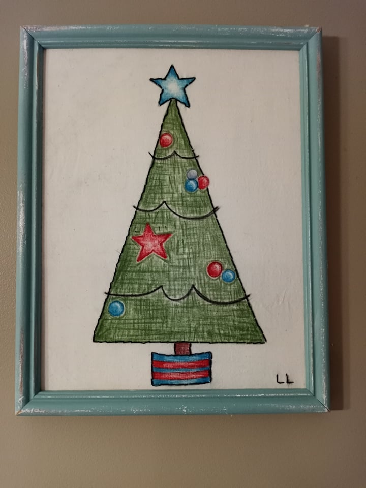 Arbre de Noël brodé et techniques de teinture au crayon de cire